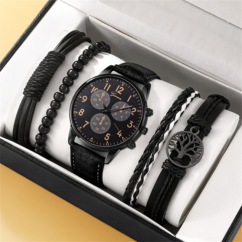 ساعات كوارتز رجالية ونسائية 5 قطع – تصميم عصري وأنيق للأعمال