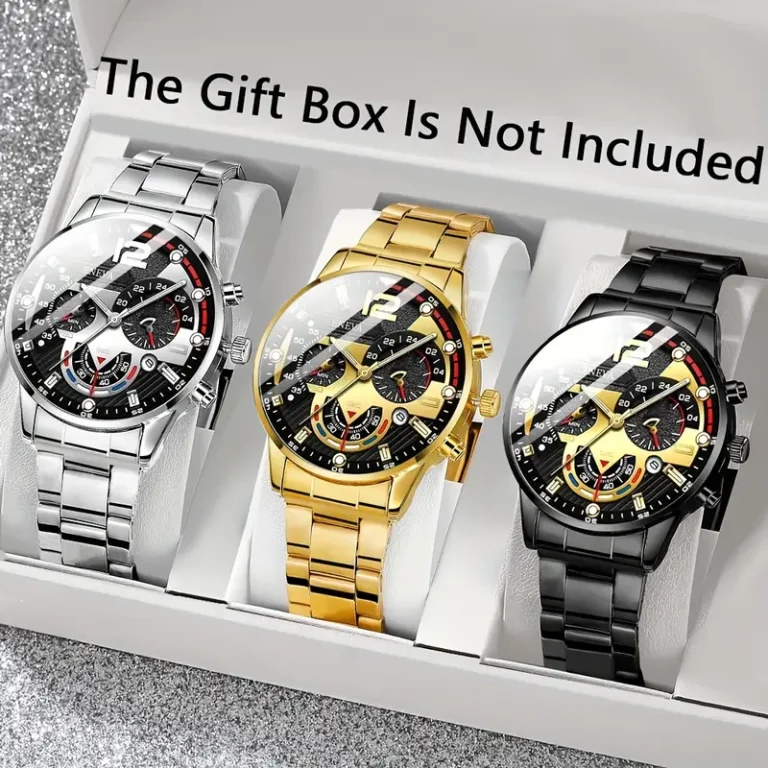ساعة رجالية كوارتز بشاشة كبيرة – تصميم سباقي مع سوار فولاذي أنيق