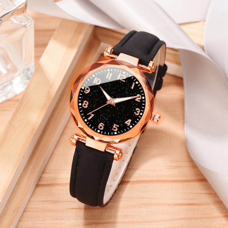 طقم 6 ساعات نسائية كوارتز – تصميم بسيط بدائرة مينا وسوار PU مع مجموعة هدايا أنيقة