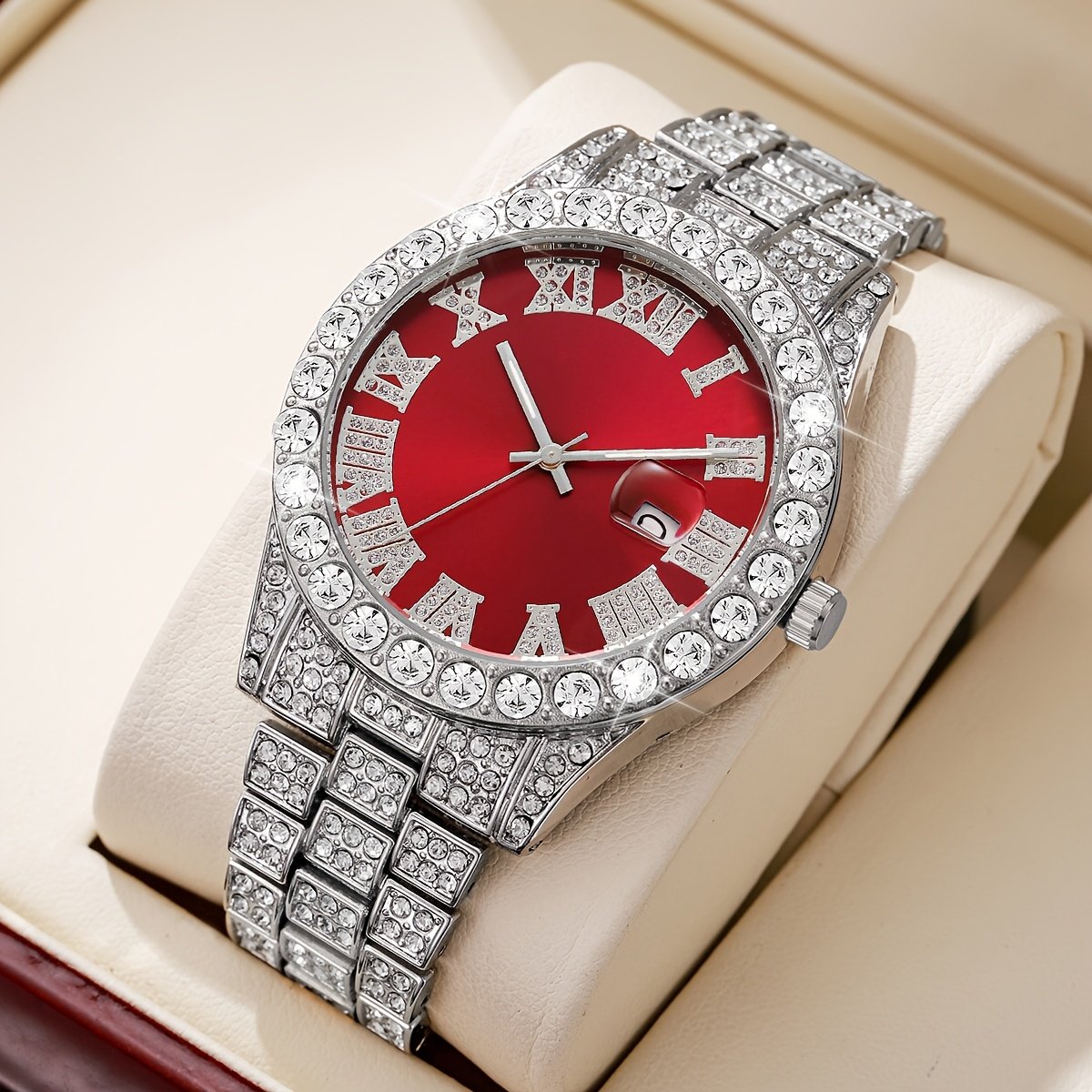 ساعة رجالية كوارتز كلاسيكية – تصميم عصري، مينا كبير، أرقام رومانية وتقويم