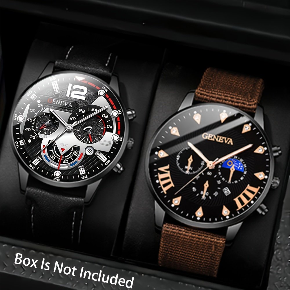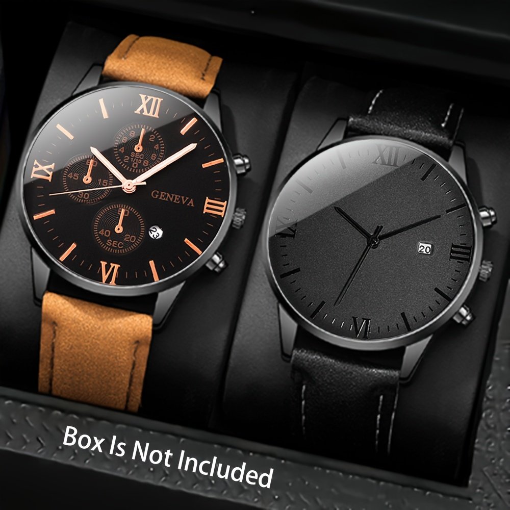 طقم ساعات رجالية كوارتز رياضية 2/4/6 قطع بحزام جلد PU مع تقويم