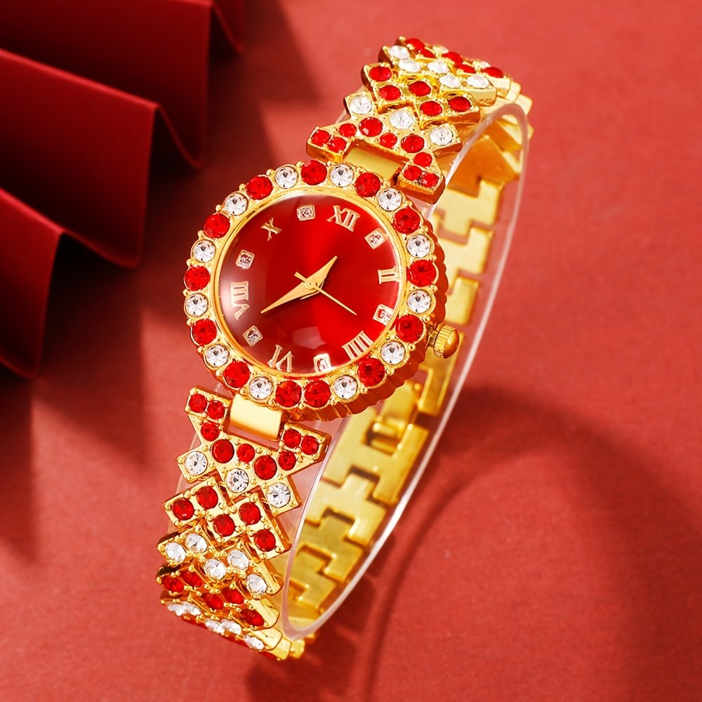 طقم 5 ساعات نسائية كوارتز فاخرة مع إكسسوارات – قلادة، خاتم، وأقراط، هدية مثالية